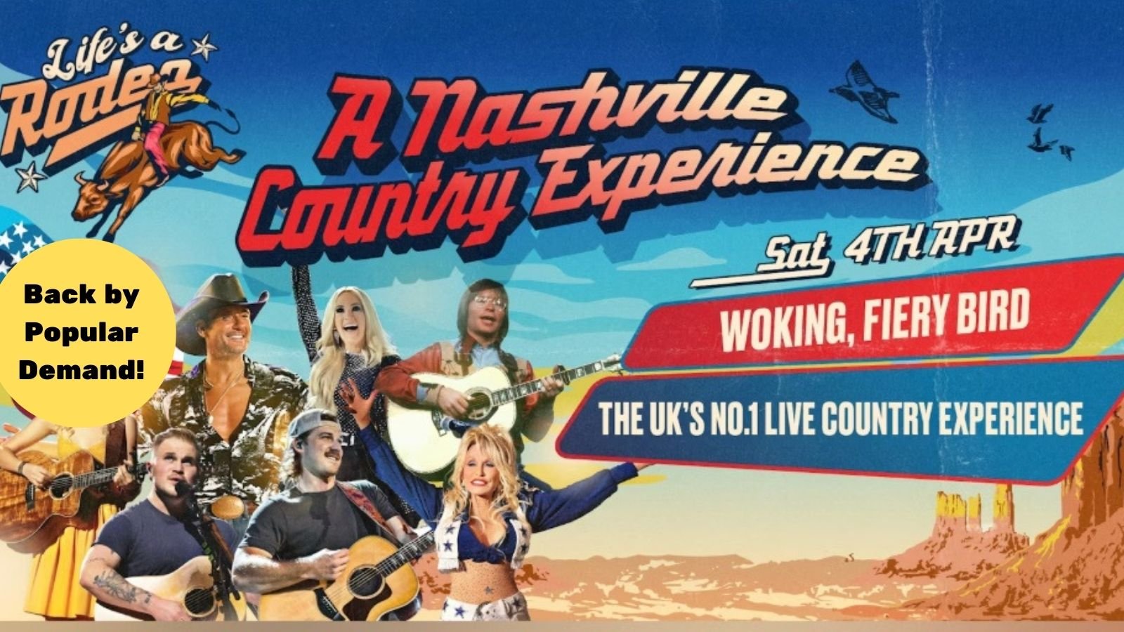 Dust off your boots and saddle up for Life’s a Rodeo, the ultimate country music experience right here in Woking at the Fiery Bird! Join us for a night of toe-tapping tunes, heartfelt ballads, and high-energy hits performed live by our country music band. So grab your friends, throw on your best cowboy hats and flannel, and join us for Life’s a Rodeo — where Woking meets Nashville!